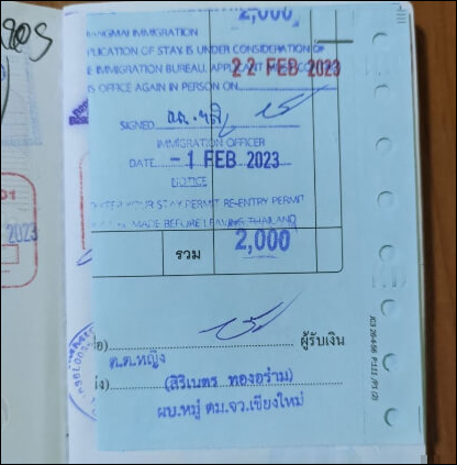 7. 본인의 번호가 호출되면, 서류를 제출하고, 약 30분 후 간단한 스냅사진 촬영을 하신 후, 2,000밧을 내시면 이민국 1차 방문이 마무리됩니다.
