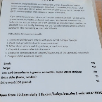 이렇게 가격을 올렸음에도 한국 손님이 많이 있으니,, 아마도 조만간 분짜 큰것이 200밧을 넘는것도 보실 수 있을 듯 합니다.