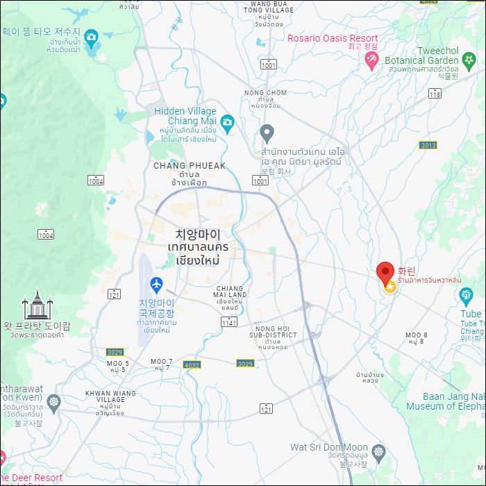 후아린의 위치는 치앙마이 최대규의 골프연습장인 엠스포츠(M-Sport) 맞은편에 위치하고 있습니다. 주차장은 넉넉한 편이고 점심시간에 대기시간이 긴 편입니다.
